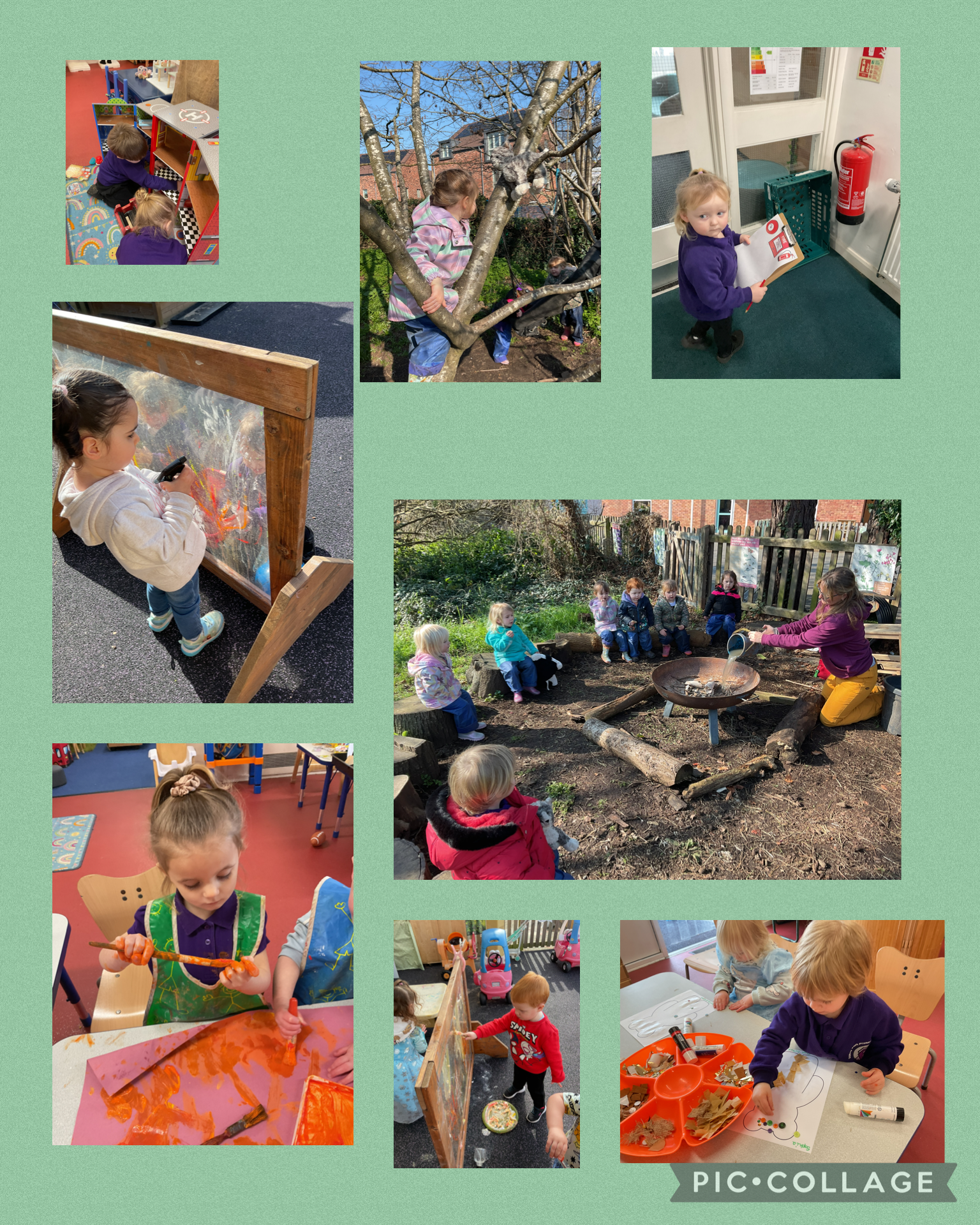 In forest school we pretended to be firefighters and rescued cats stuck in a tree using some steps and sat around a fire learning how to be safe.